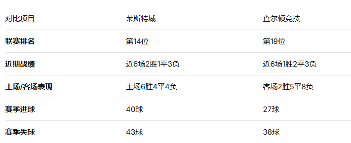 北京时间2026年1月31日20:30,英冠联赛将进行一场比赛,由莱斯特城在主场皇权球场迎战查尔顿竞…
